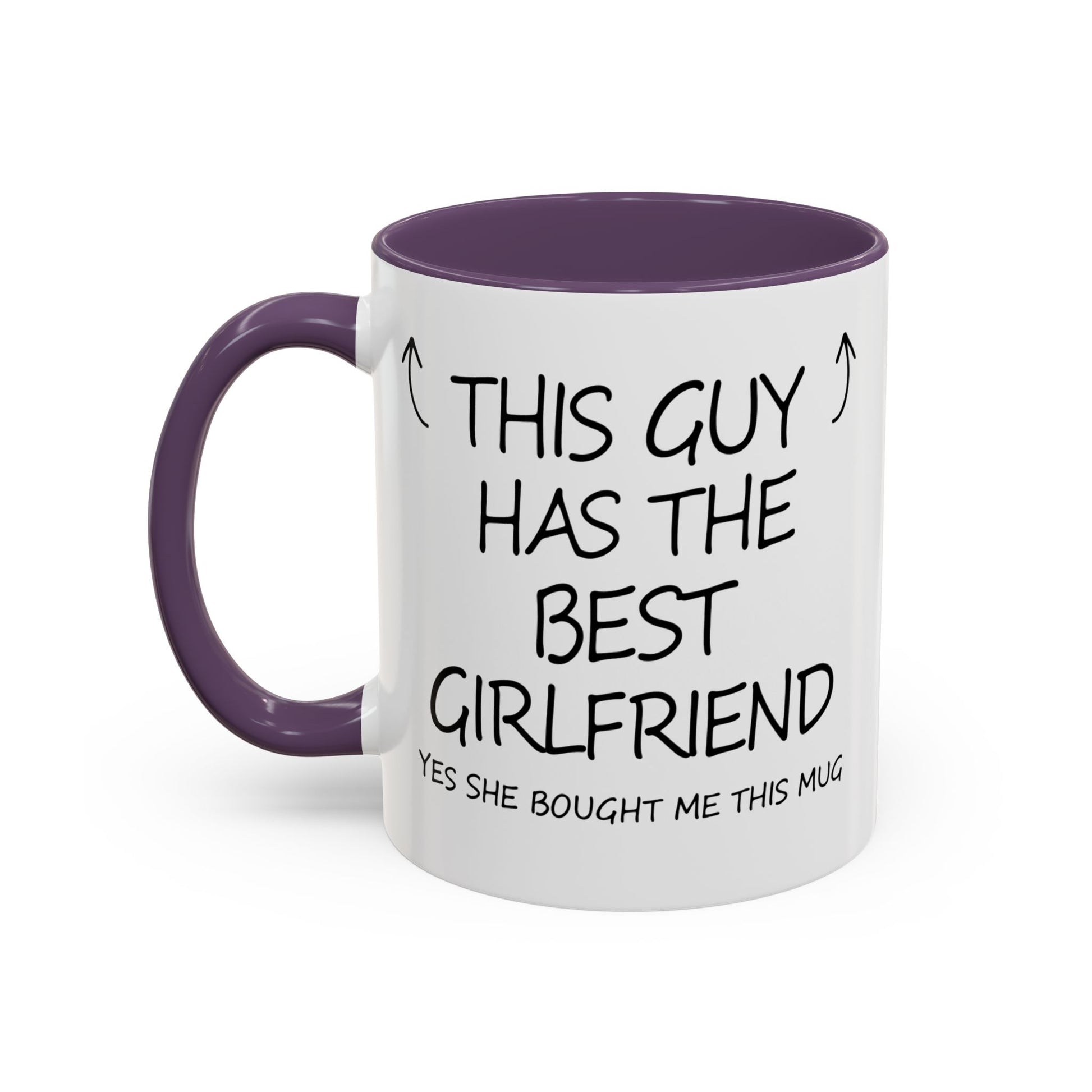 A cheeky, low-key romantic mug that sparks a smile with every sip. Matte-white ceramic contrasts with a colored interior and handle, framing a handwritten-style message that reads “This guy has the best girlfriend” with playful arrows. It feels like a small, everyday celebration — morning coffee that quietly brags and evening tea that reminds him she’s thinking of him. Lightweight but sturdy, the glossy finish keeps the print crisp while the color pop on the handle adds personality to his routine. Slip it into a cozy morning, a lazy weekend brunch, or a casual anniversary moment to keep the tone warm, personal, and a little bit proud.